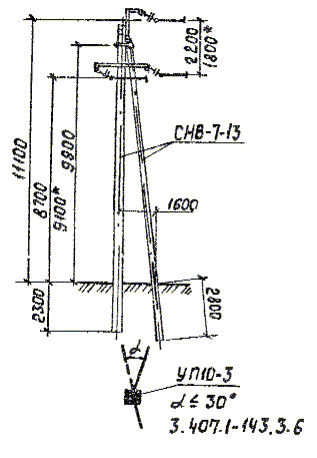 Опоры на базе железобетонных стоек длиной 13 м