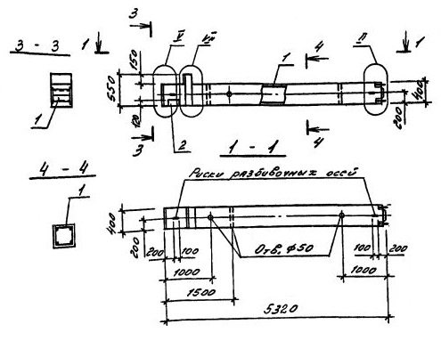 1КВО 60.00-3.28.00    Колонны одноконсольные для верхних этажей (Серия 1.020.1-4).