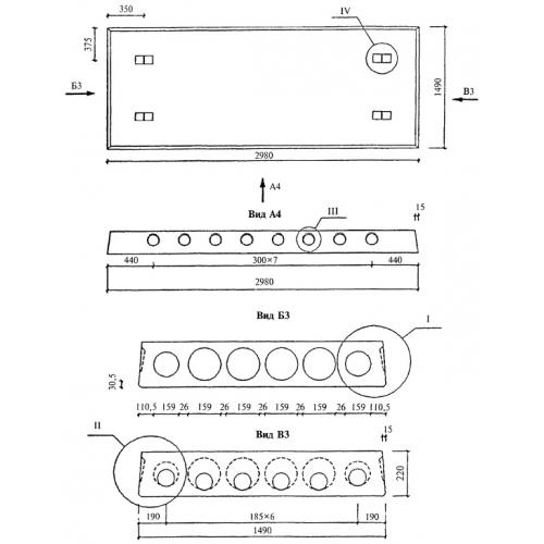 Плиты длиной 2980 мм и шириной 1490 мм с арматурой из стали классов A-III и Bp-I из тяжелого бетона.