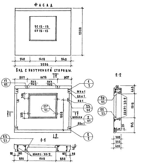 НР1-33.29.35-2   Наружная стеновая панель рядовая по Серии 1.132-1.
