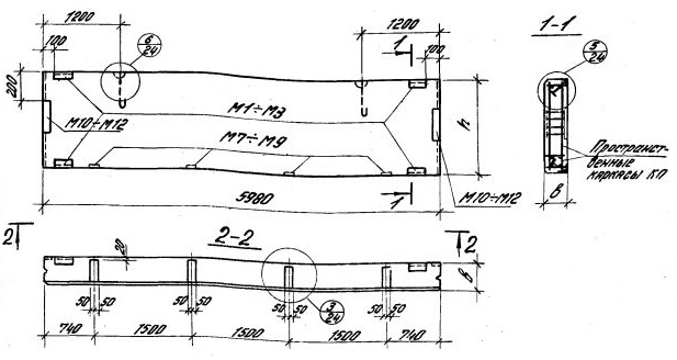ПС 600.18.25-п-9   Парапетная панель-перемычка при простенках длиной 1,5м.