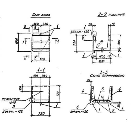 Л 15д Лотки теплотрасс доборные Серия 3.006.1-2/87.